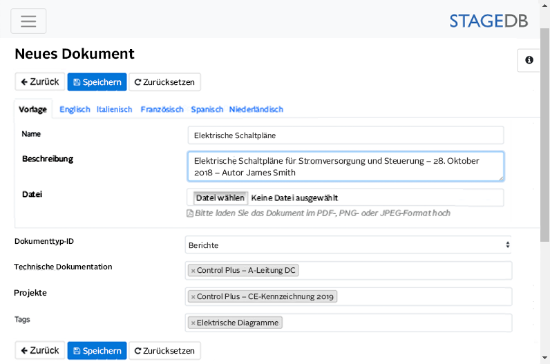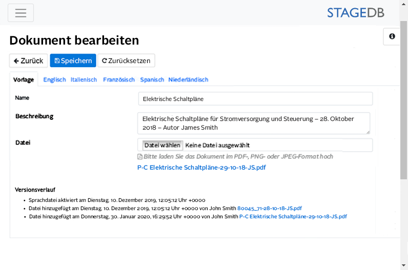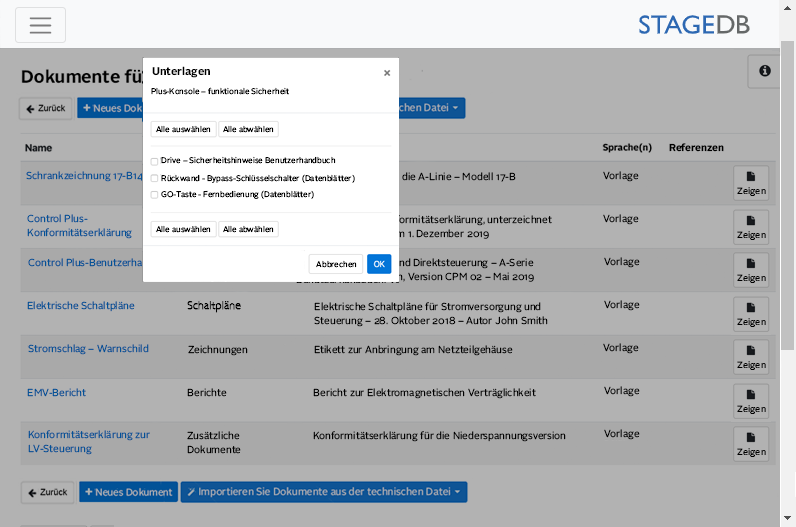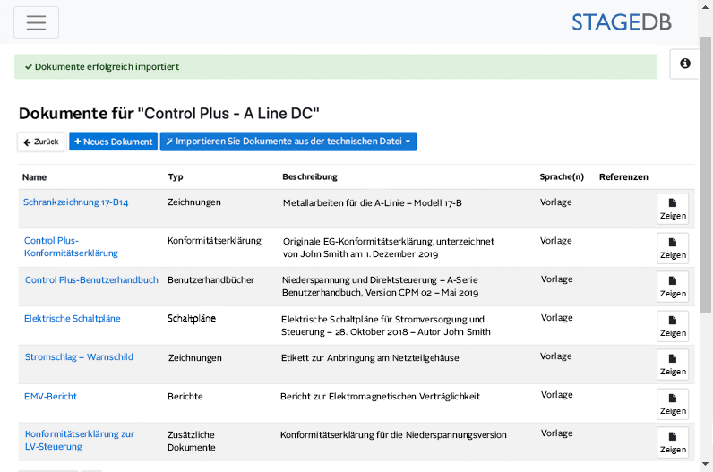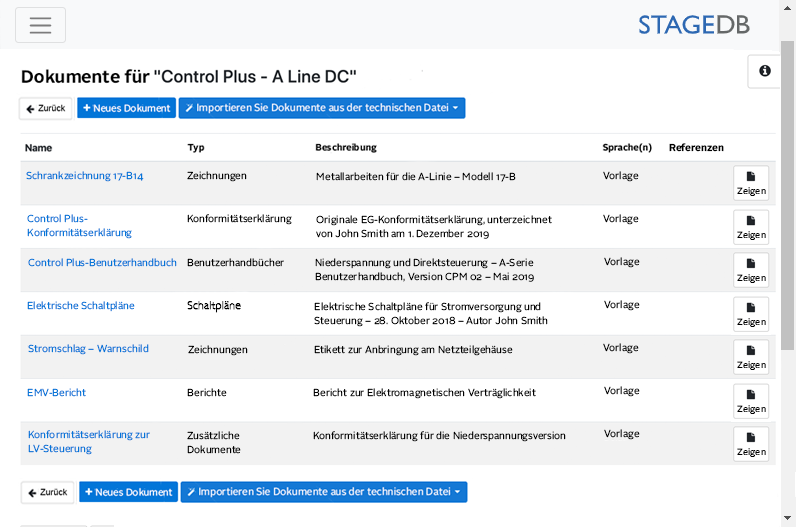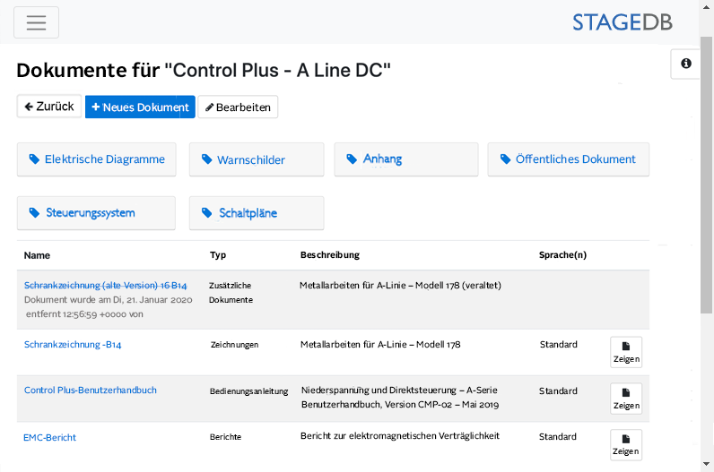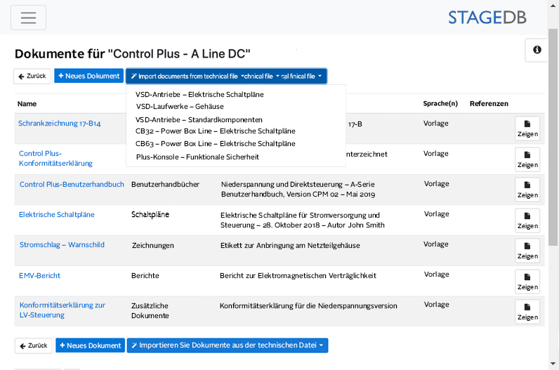 Die INTELLIGENTE TECHNISCHE DOKUMENTATION ist ein Modul, das zum Basispaket Ihres StageDB-Kontos hinzugefügt werden kann. STF bietet Ihnen eine schnelle und effiziente Möglichkeit, Ihre technische Dokumentation zu organisieren. Sie können vollständige technische Dossiers speichern, jedes Dokument mit benutzerdefinierten Tags kategorisieren, den Dateiverlauf nachverfolgen und Dateien mit Projekten verknüpfen.