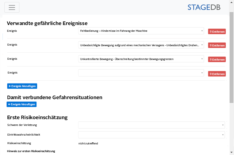 der zugehörigen gefährlichen Ereignisse und Gefährdungssituationen für jede Gefährdung