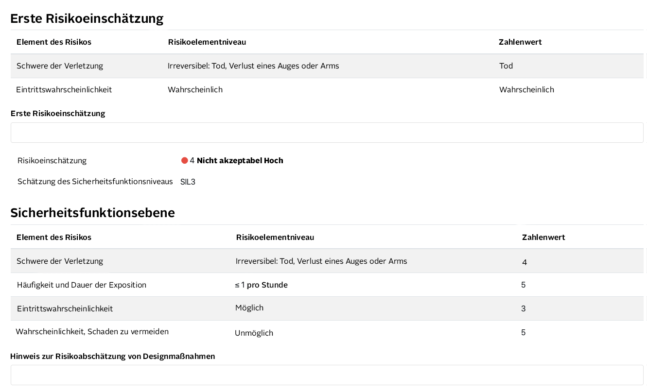 Mit ORA können Sie Ihre eigene Risikoeinschätzungsmatrix definieren. Sie können wählen, ob Sie Ihre Matrix basierend auf der SIL- (EN 62061) oder der PL-Struktur (EN ISO 13849) erstellen oder ob Sie Ihre eigene Matrix entwickeln möchten.