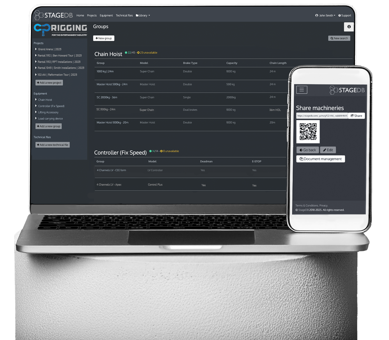 StageDB database is a public, collaborative resource for the stage equipment industry. Our comprehensive, multilingual databases contain models for Equipment Compliance Bundles (EDB) and standard terminology for On-site Risk Assessments (ORA).