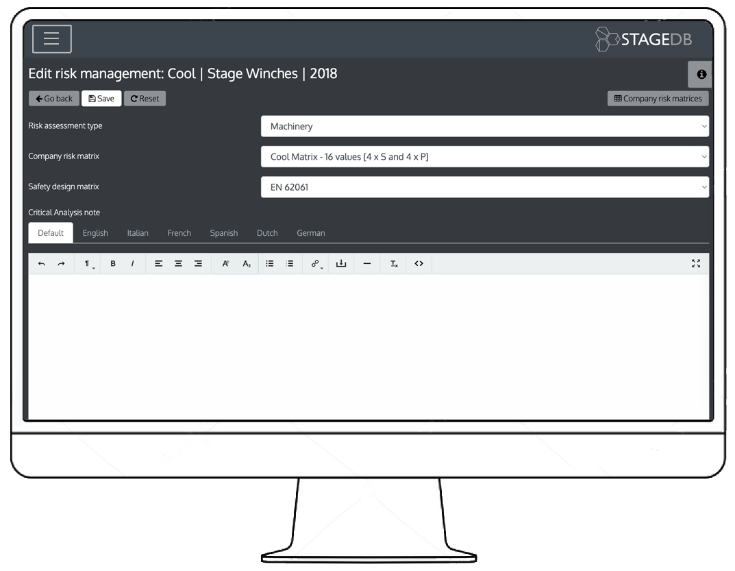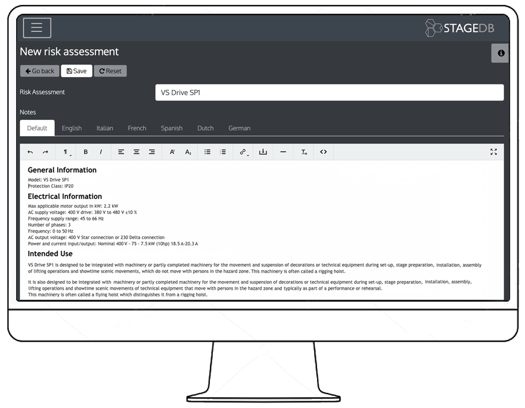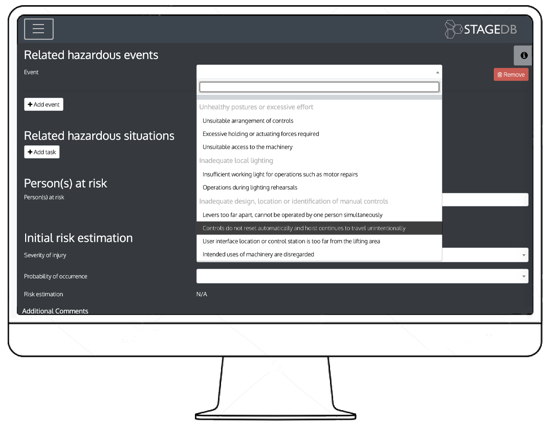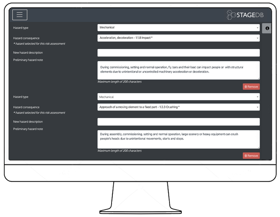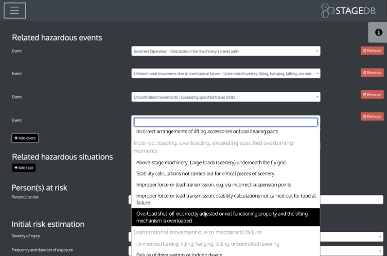 Online Risk Assessment is a module that can be added to your StageDB account’s basic package. ORA is suitable to generate risk assessments or scenic motion risk assessments based on EN ISO 12100:2010, in line with the requirements of DIN 56950-1:2012, SQ P2:2018 and EN 17206.